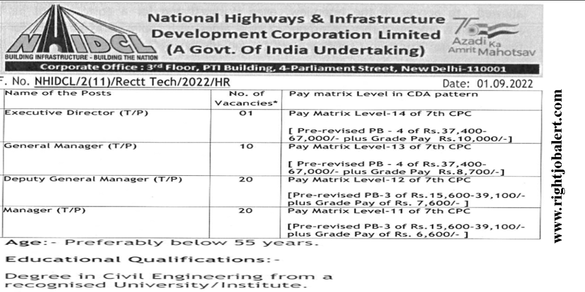 [New post] NHIDCL 67000 Salary Executive Director or General Manager or Deputy General Manager or Manager Civil Engineering Job opportunities