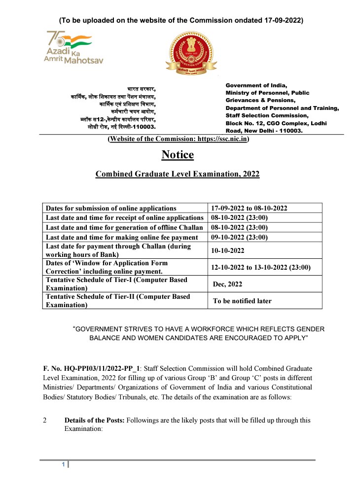 The Staff Selection Commission has released an official notification for SSC CGL 2022 exam on its website. Read full news here.