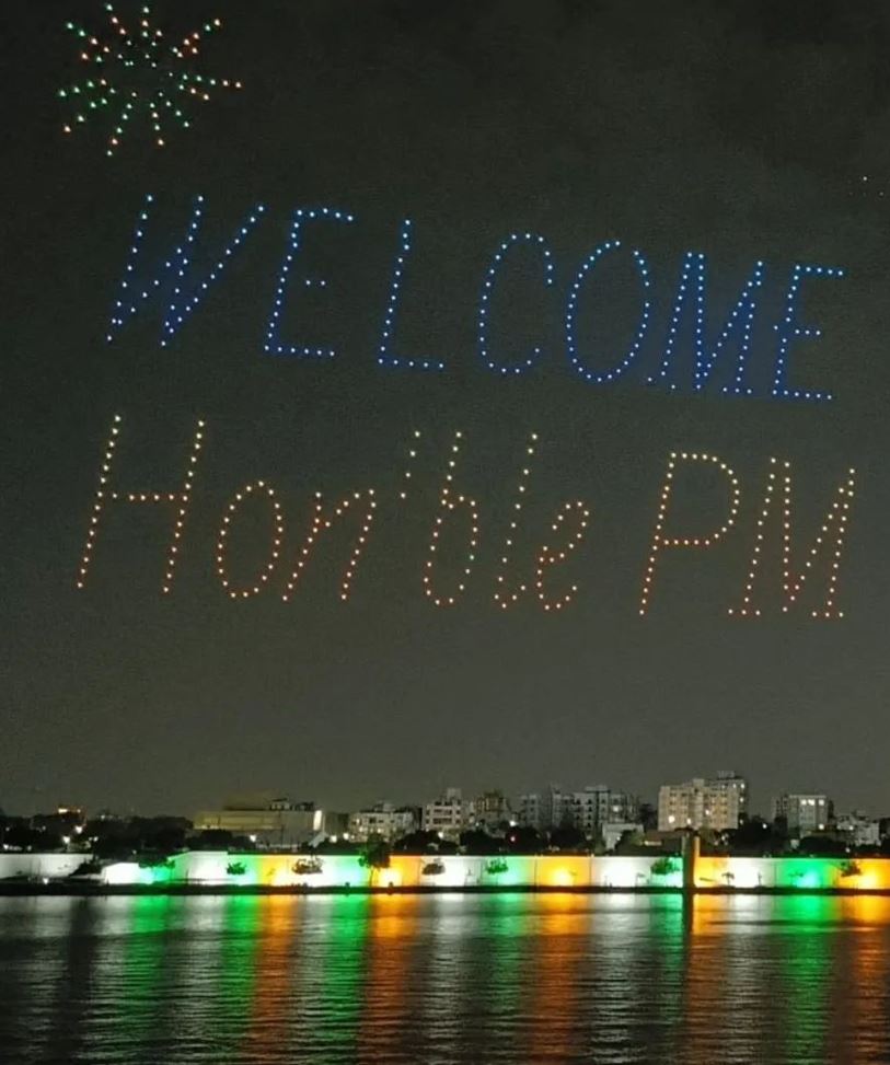 When Prime Minister Narendra Modi is going to inaugurate the National Games in Ahmedabad today, the city of Ahmedabad has been decorated like Navoda. A drone show was organized at the river front last evening as the festival of Navratri, the joy of the launch of the Metro, is seen in the city's decorations. A large number of people watched this scene. These drones were built by students of IIT Delhi for the drone show.