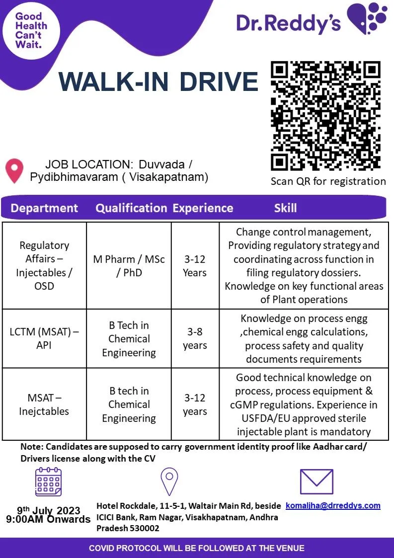 Dr.Reddy's Laboratories Walk In Interview 2023.Dr. Reddy's Laboratories Notification full details below. Interested and eligible candidates can attend interview on scheduled time and venue.Dr. Reddy€