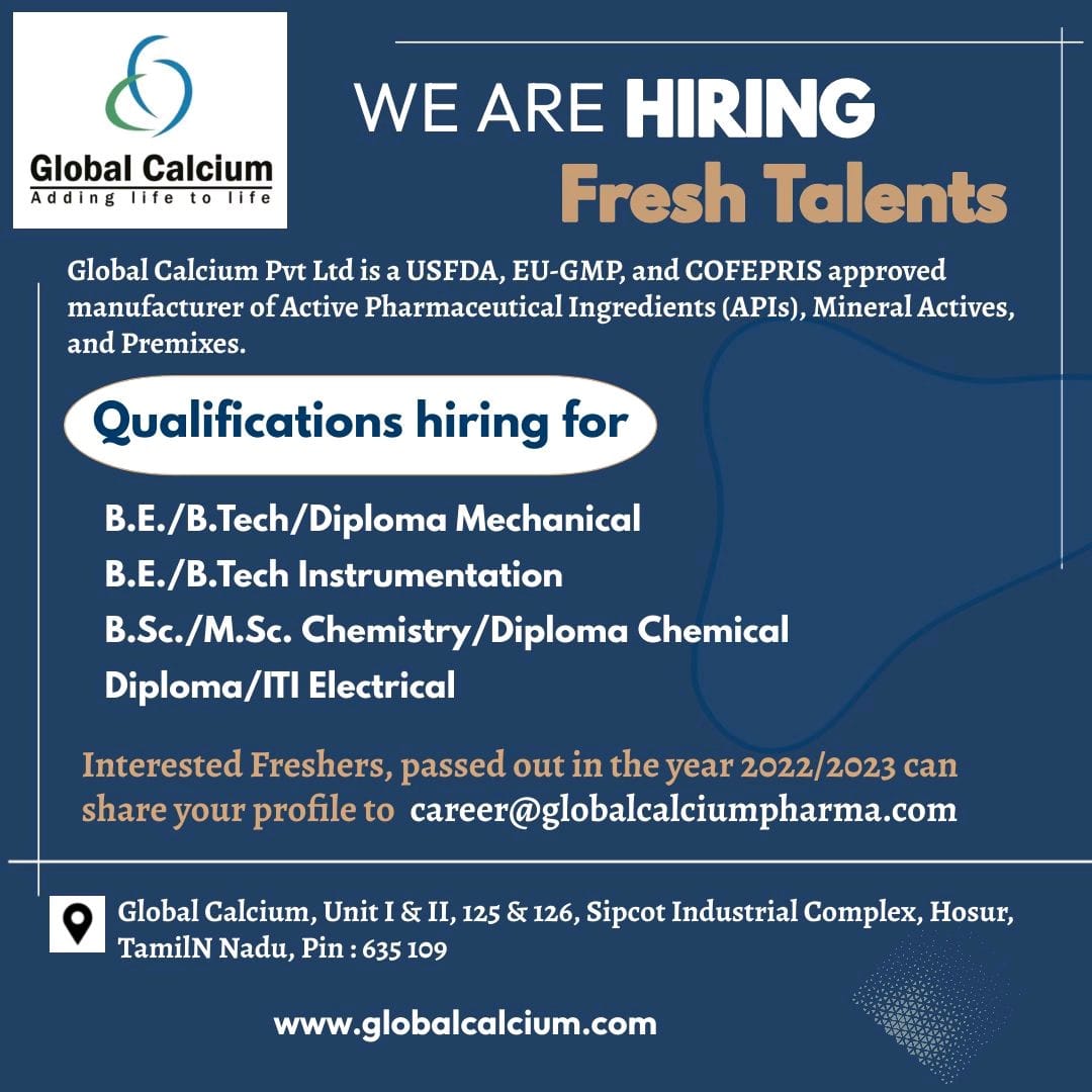 Job Description: Greeting from Global Calcium Pvt.Ltd!!!!!